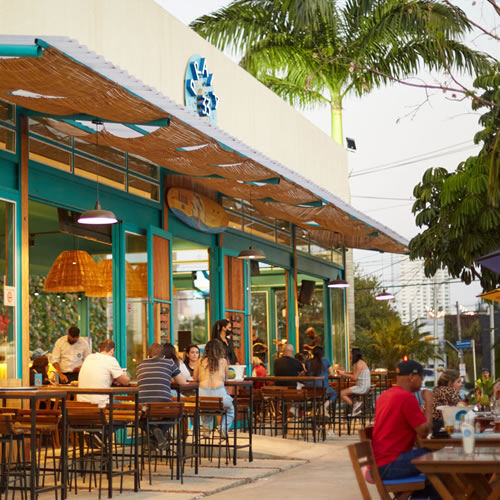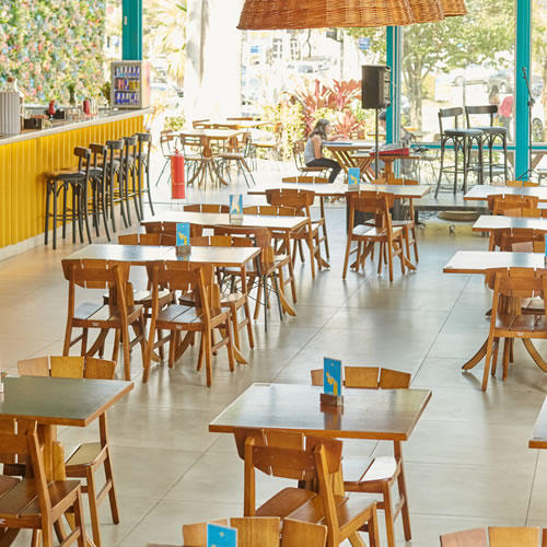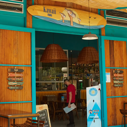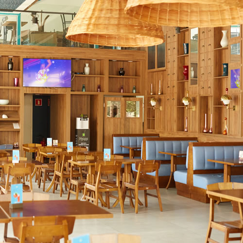 O Praia é caracterizado por dois ambientes sendo um interno que se assemelha a uma bela casa de praia com um design arquitetônico aconchegante e moderno, e uma parte externa onde a mesma sensação praiana ocorre devido ao amplo espaço aberto com livre acesso ao sol em dias ensolarados, com mesas em madeira e amplos guarda-sóis, tudo muito bem integrados graças à enormes janelas e portas de vidro que conectam o cliente com o espaço gerando a sensação um único ambiente.
